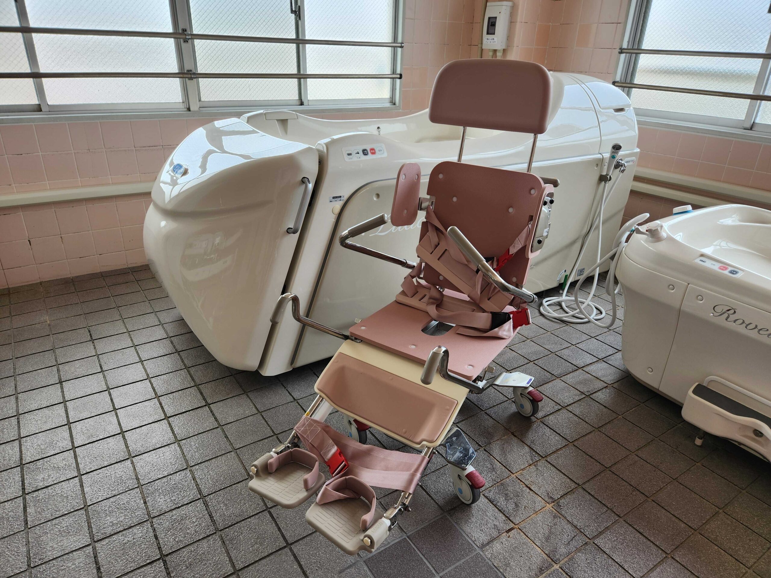 赤い羽根共同募金のご支援により、特養の介護浴槽を更新いたしました。ご入居者様が気持ちよく入浴する事が出来ております。ご支援いただいた方々に感謝申し上げます。